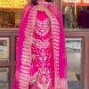 Elevate your festive and wedding style with our velvet suits for women partywear, crafted for elegance and comfort. The top is made from pure viscose velvet with intricate fancy work, giving you a luxurious and regal look. Paired with a pure Bemberg organza silk weave dupatta featuring delicate fancy embroidery, this set adds a touch of sophistication to any occasion. The bottom comes in pure viscose Banarasi silk weave solid fabric, completing the outfit with a rich traditional appeal.