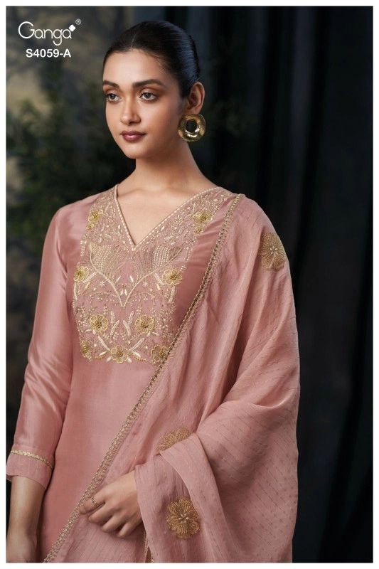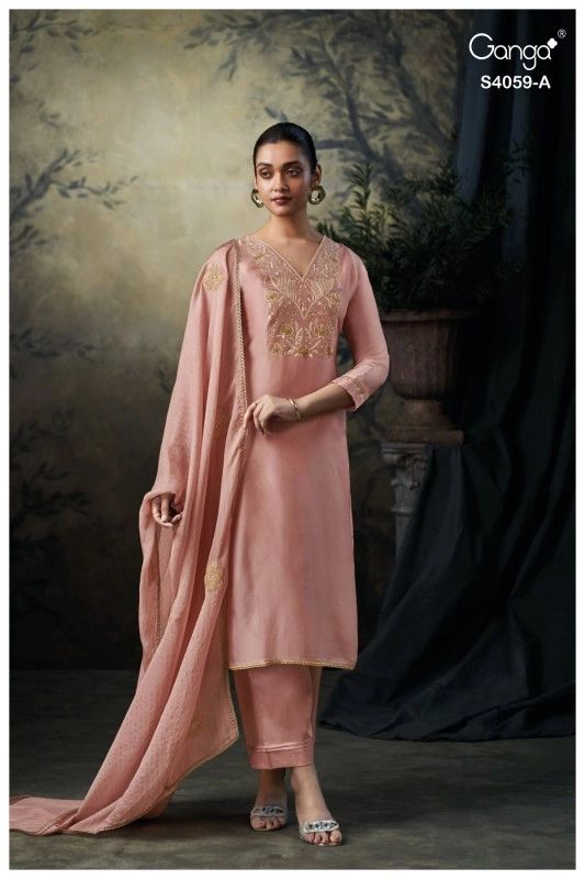 - Top – premium pure bemberg habutai silk solid with embroidery hand work organza jacquard jari lace on daman and sleeves