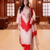 Elevate your winter ethnic wardrobe with Omtex Ritha 21 Velvet Suits Collection – a perfect blend of luxury and comfort. Crafted in pure viscose velvet with rich embroidery, this outfit defines regal charm for festive and party wear. The Banarasi Jacquard bottom adds a traditional touch, while the velvet brasso dupatta completes the ensemble with sheer elegance.
