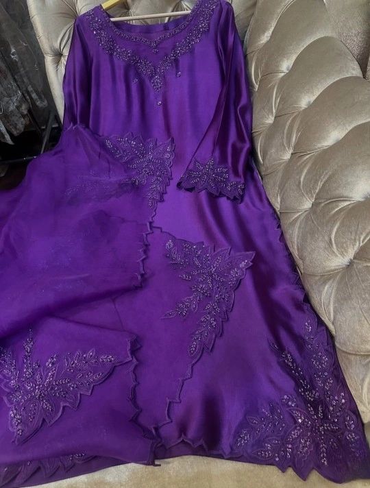 Add this royal purple Punjabi silk suit to your designer wardrobe and shine with confidence at every occasion.