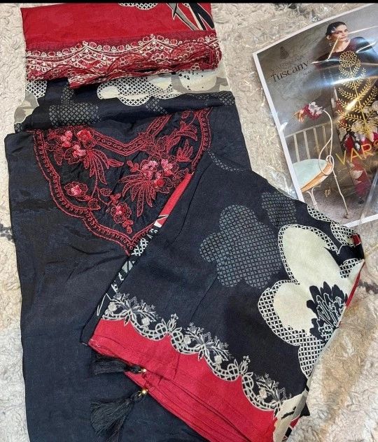 - Top: Viscose Muslin, digitally printed with embroidered neckline & borders