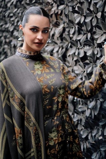 Varsha-verne winter pashmina wool suit three piece set women | grey